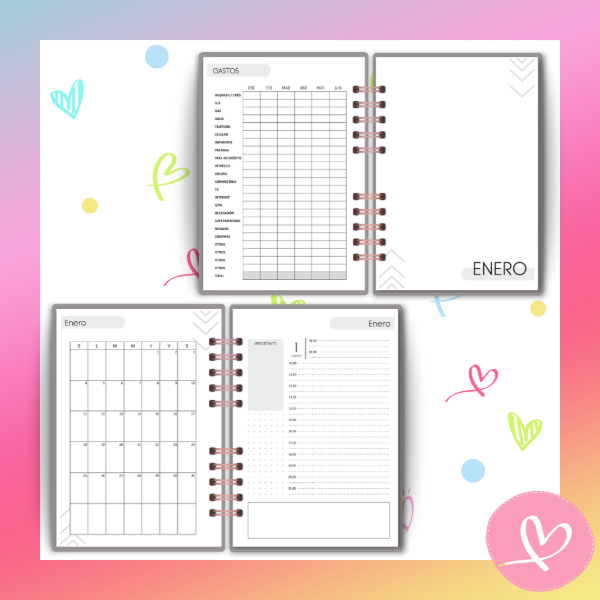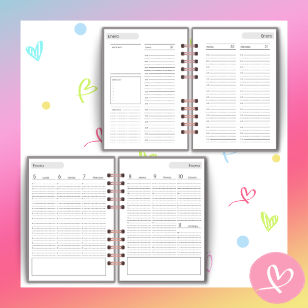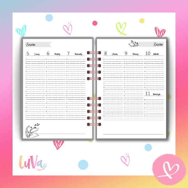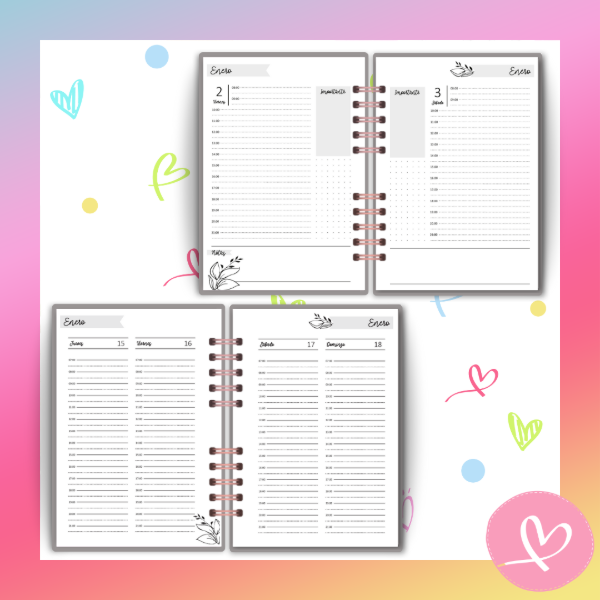 - Diagramación Diaria, Dos dias o semana a la vista vertical CON HORARIOS